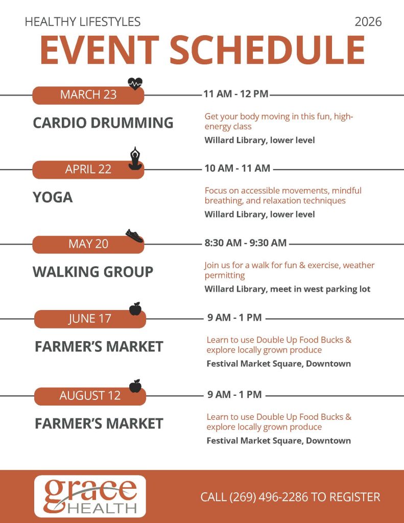 Want to get a little more movement in your day, feel better about yourself, but don’t want to do it alone? Our Healthy Lifestyles Team is here for you! Come join the team for our 2026 Healthy Lifestyle events. Mark your calendar do you don’t miss it.